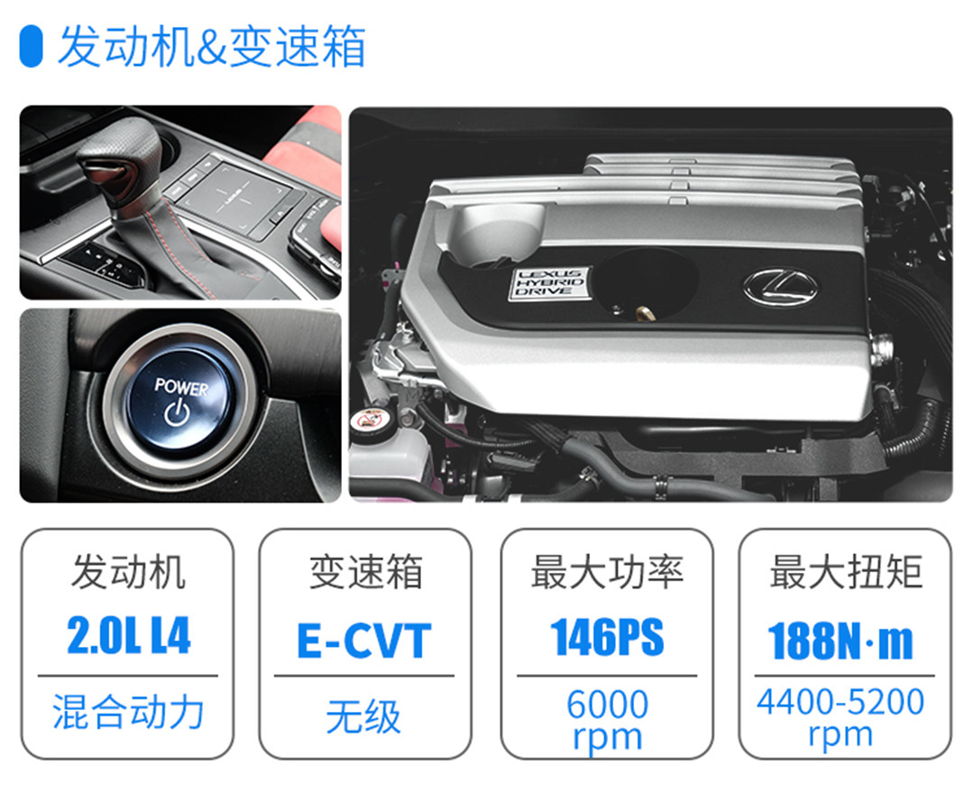动力系统算是UX 260h的一大亮点,虽然并不是以澎湃为基调,但胜在轻快省油。这套混动系统有几种工作模式,包括起步时电动机单独工作、低速行驶时以电动机为主发动机为辅、正常行驶时发动机为主电动机为辅、以及全力加速时发动机、电动机的双重输出。