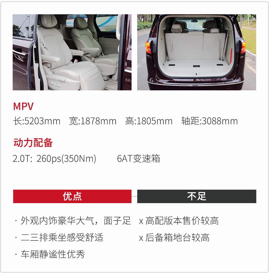 对于那些想买一台7座车当网约车的个人用户,或者想买几台公家车到机场等交通枢纽接待客户的企业用户来说,能够舒服满载7人,同时后备箱还有足够空间放下随身行李的MPV无疑是最佳的选择。但是,作为网约车和公务用车的MPV,还有两个前提,一是车价不能太高以便快速回本儿,二是看起来还得足够高级有面子,而满足以上条件的,就数以下几款车了。