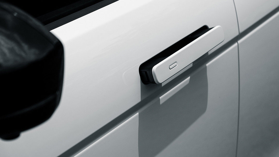 隐藏式的车门把手,是全新一代揽胜极光在外观上位数不多的创新设计,不但让整体外形显得更加优美流畅,还能稍微降低风阻,而在车主打开车门和向亲朋好友介绍自己的爱车时,这项设计也是装逼利器。