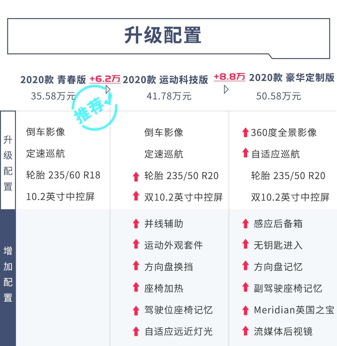 从配置的升级上很容易就能看出,对于最低配来讲,中高配并没有在驾驶上有过多的升级,而仅仅只是在科技配置和舒适性配上进行了增加和提升,更何况在选装方面,低配车型的选择有很多,选装的空间比较大,自己喜欢哪个配置选哪个,所以教授更加推荐最低配的青春版车型。