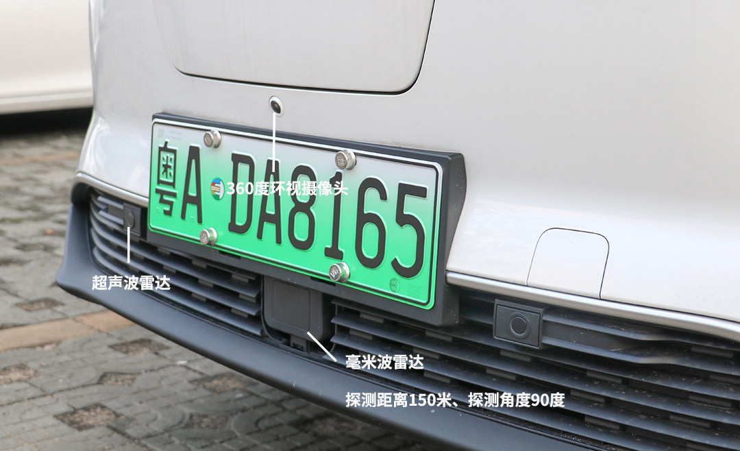 4 个位于车头、车尾及左右后视镜下方的环视摄像头,还有12 个超声波雷达。
