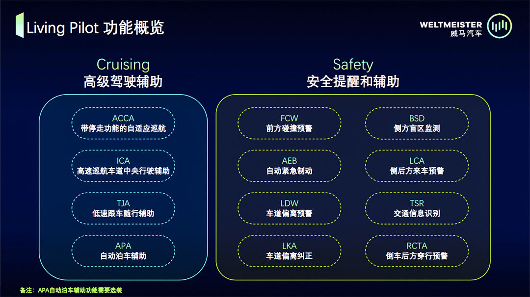值得注意的是,因为威马Living Pilot中的ACCA可以支持0-130km/h全速域启动,所以即便车辆处于0km/h的静止状态,ACCA自适应巡航系统依然可以被激活,自行起步。