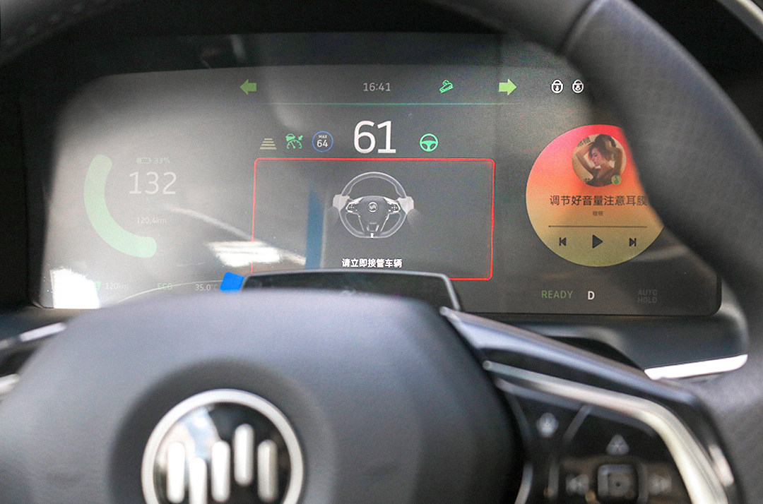 当驾驶员的手离开方向盘的时间超过了15秒,系统就会自动发出嗡鸣声并且在仪表盘上显示“请将手放回方向盘”的文字警告,提醒驾驶员注意安全。