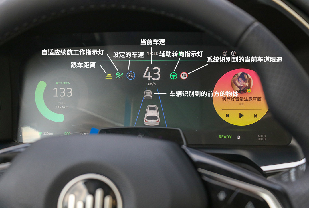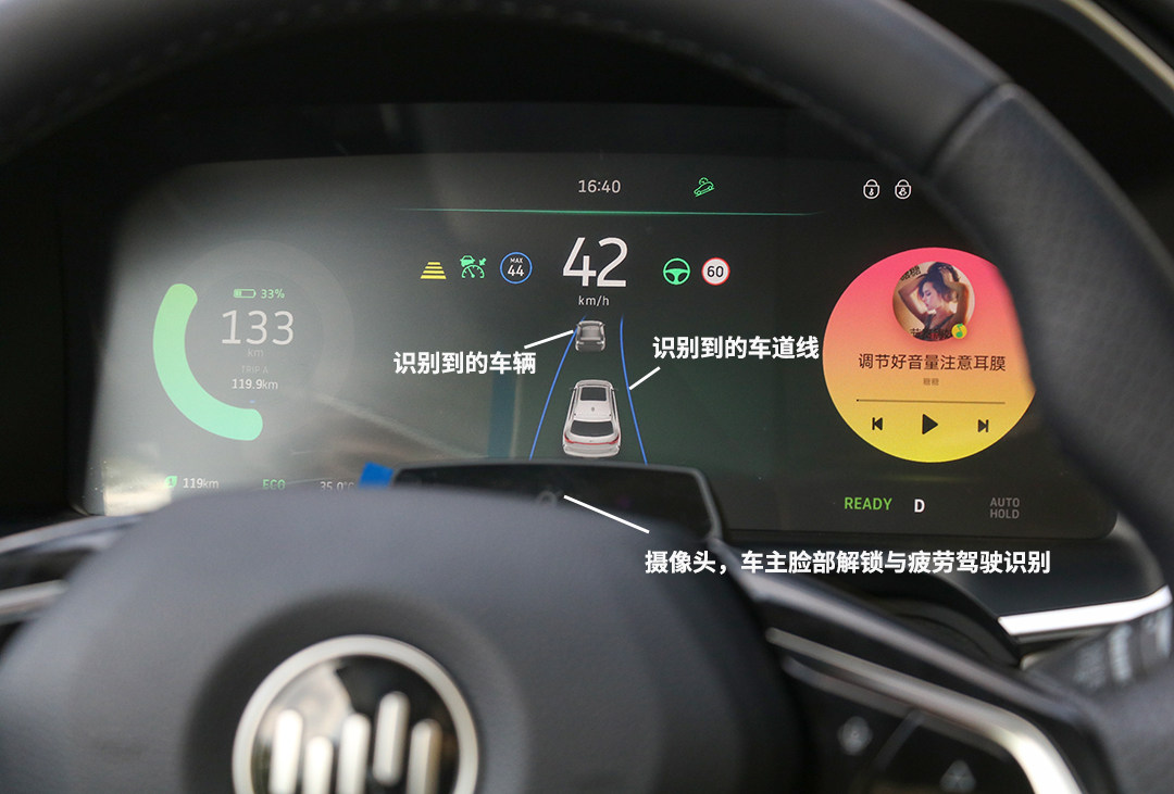 众所周知,对于开车人员来说,通过仪表上的信息变化,能够有效判断车辆是否识别到了车道线和障碍物,但遗憾的是,这款车并未配有HUD平视系统,不然给用户带来的体验应该会更好。