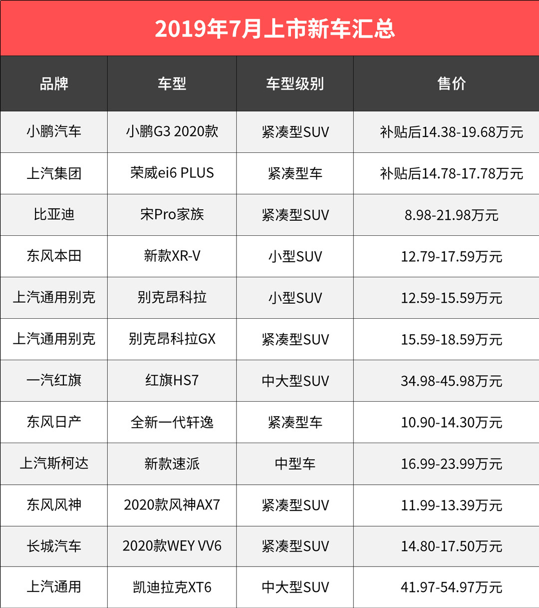 经历完烈日与台风的混合双打后,好不容易度过了7月,当我们以为顺利通关的时候,其实是更高难度的副本在等着我们。回顾过去的7月,一大波新车扎堆上市,有家轿之王轩逸,有小型SUV杀手XR-V,也有帕萨特、迈腾的老表速派,更有凯迪拉克的国产旗舰SUV······一波又一波的重磅新车让我们拍手称快,话不多说,我们看车走起!