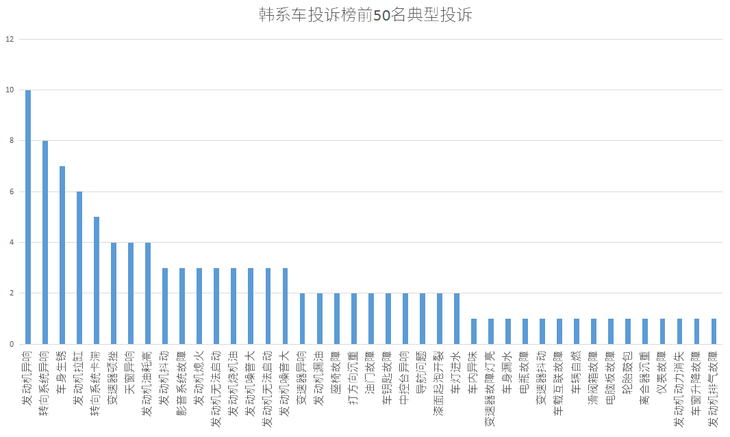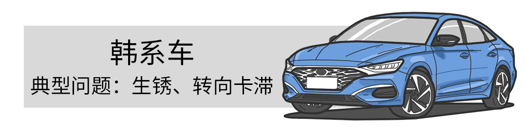 韩系车被投诉得较多的则是车身生锈以及发动机拉缸、转向系统卡滞问题,除了这三个典型故障之外,韩系车的投诉主要还是集中在发动机上,发动机熄火、无法启动、烧机油、噪音大、无法启动等问题都有一定比例的投诉,看来韩系车相比较其它海外品牌车型,在三大件上还确实小有差距。