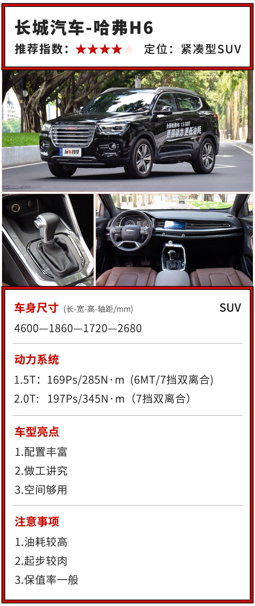 对于哈弗H6这款车型,教授是比较推荐的,一个因为销量巨大,所以市场保有量高,汽车零配件丰富。虽然说自主品牌容易出现一些小毛病,但是维修起来不仅方便,而且还便宜。对于这种销量王,还是值得信赖的。