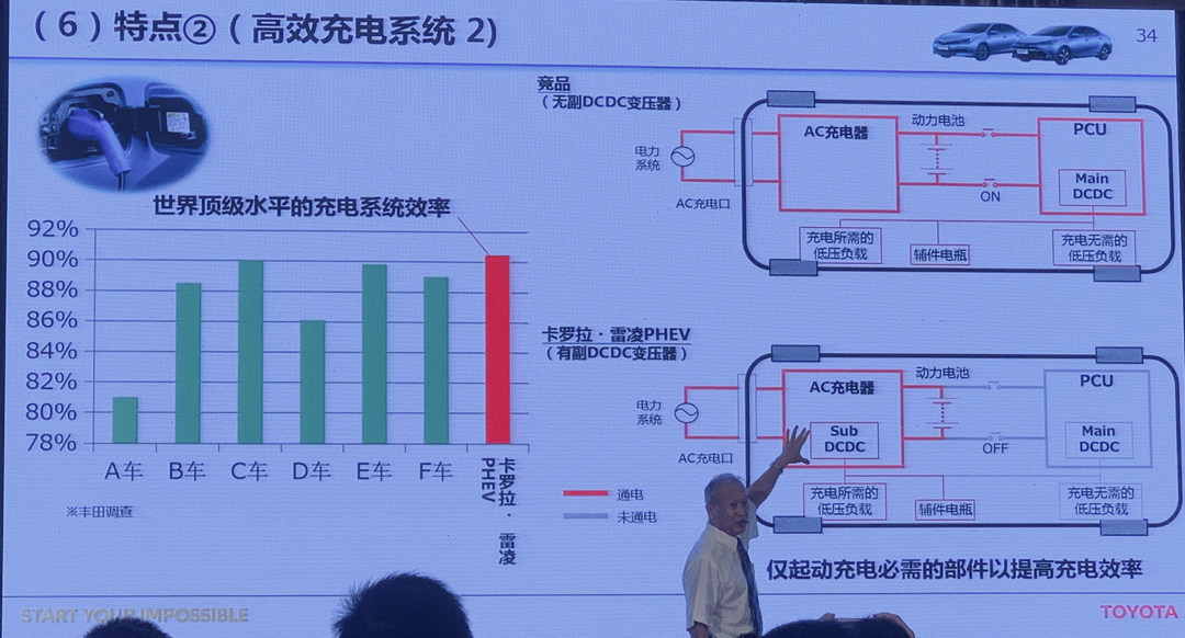 需要注意的是,目前丰田PHEV车型并不支持快充,只能通过家用充电桩或者220V充电。据松本先生称:丰田考虑过这个问题,由于快充只能发挥电池70%实力,还有30%被“浪费”掉,加之PHEV车型的电池容量不如EV车型大,所以即便是使用普通家用充电桩也能满足日常通勤需求。