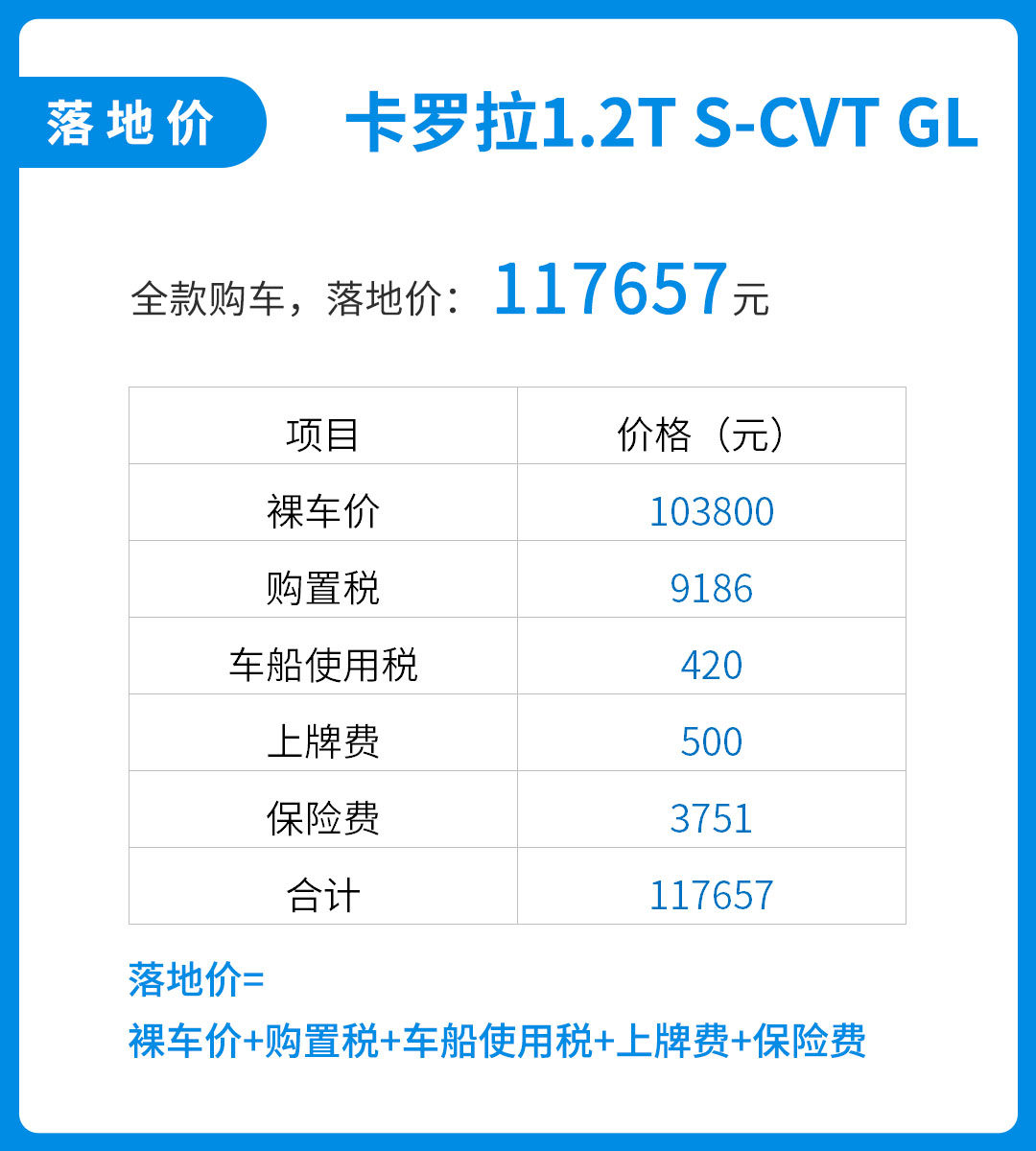 2017款 改款 1.2T S-CVT GL官方指导价为11.78万元,加上终端1.4万元的优惠,裸车价大概10.38万元,再加上税费、保险、上牌等花费,在全款购车的情况下,最终的落地价约为117657元。