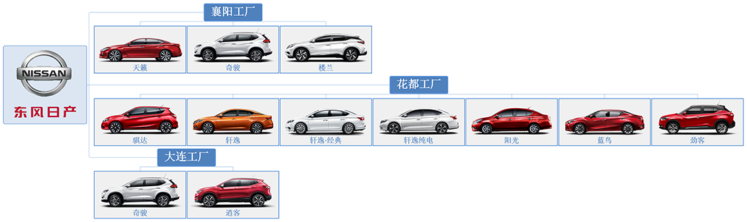 156.39万的总销量中东风日产贡献的销量为116.67万辆,占了绝大多数的份额。背后的供应工厂主要分布在三个地方,分别是湖北襄阳,广州花都、辽宁大连。