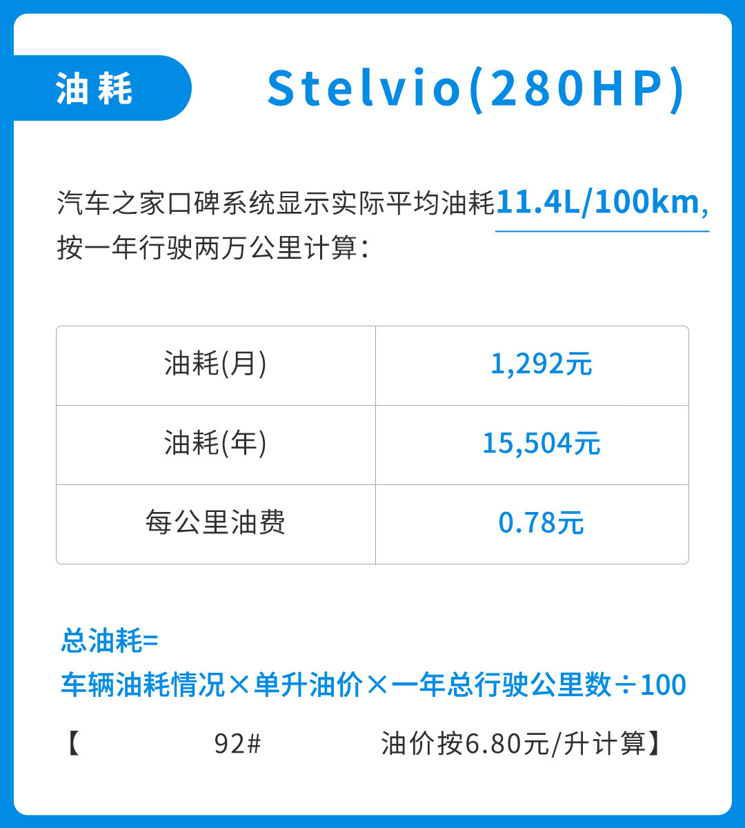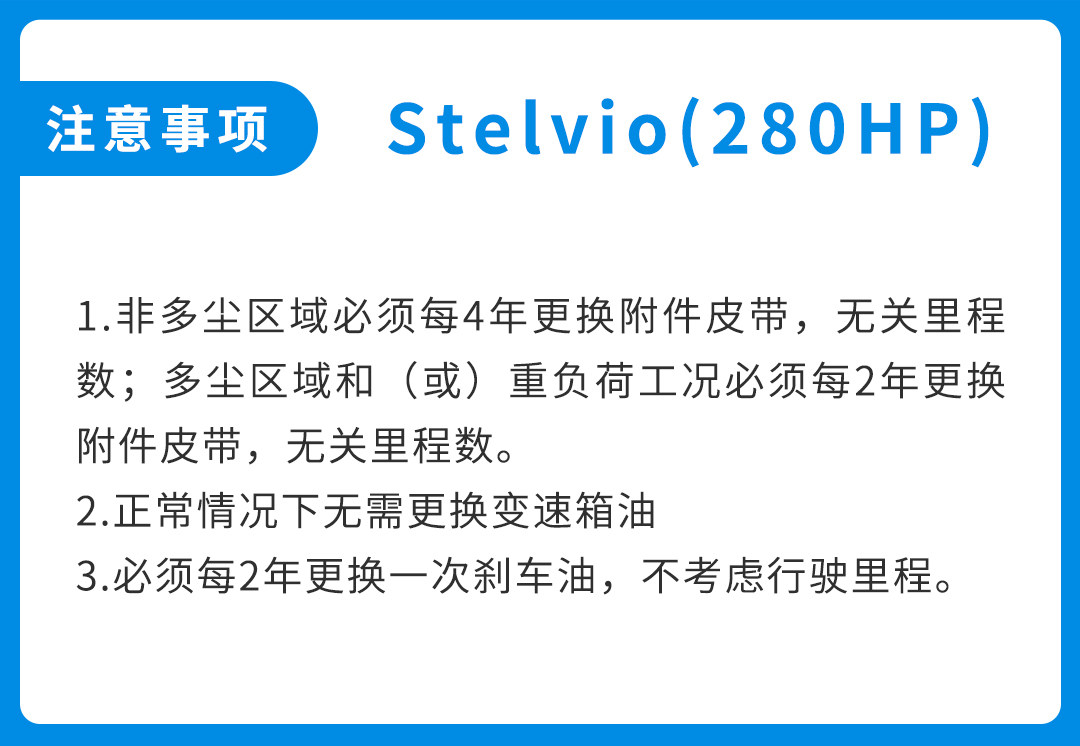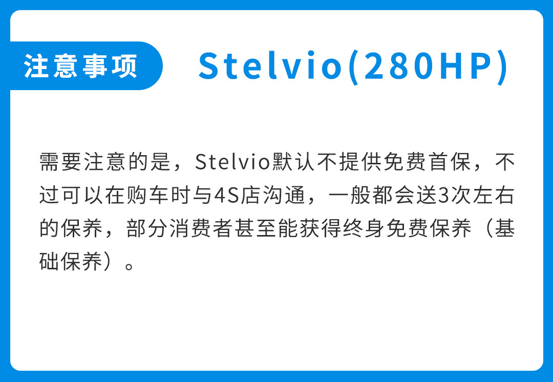 所以经过深思熟虑之后,笔者决定推荐阿尔法·罗密欧的另一款车型——Stelvio。这款车基本可以看作是Giulia的SUV版本,不过在实用性上却远超于Giulia。鉴于顶配的510HP车型更多是象征性意义,本篇文章就只来分析280HP车型,看看在后期保养这一块又是怎么样。