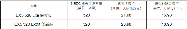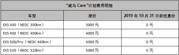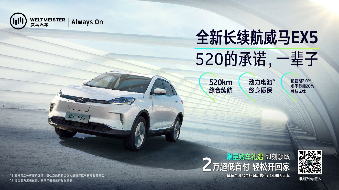 2019年8月9日,威马汽车官宣全新长续航车型威马EX5 520正式上市,搭载最新一代高能比电芯模组,以及威马独创的全车热管理系统,赋能三电系统实力升级,NEDC综合工况里程达到520公里。威马EX5 520共计推出两款车型,其中Lite探索版综合补贴后售价16.98万元,Extra创新版综合补贴后售价18.98万元。此外,即日起至8月31日期间,参与威马EX5 520线上预约登记,即可免费领取3000元购车优惠券。