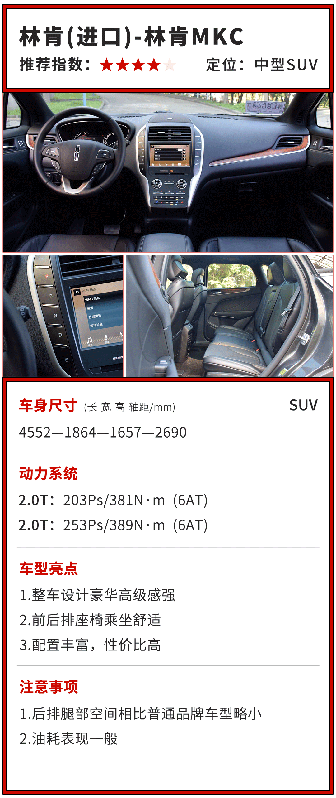现款MKC仅有分为高低功率的一款2.0T引擎,教授建议大家买低功率版就可以了,毕竟买这类车看重的更多是豪华舒适感而不是动力和驾驶性能,况且低功版的油耗还要低一些,价格更是便宜了不少,性价比更高。