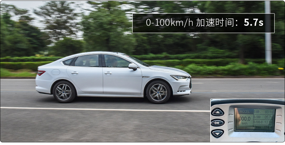 混动+运动模式下,官方百公里加速5.9秒,教授实测5.7秒,刹车距离38.7米。