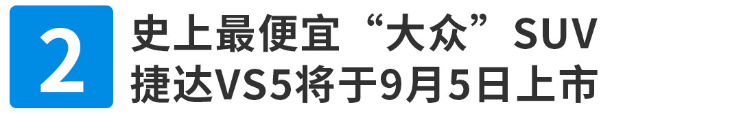 2、史上最便宜“大众”SUV,捷达VS5将于9月5日上市