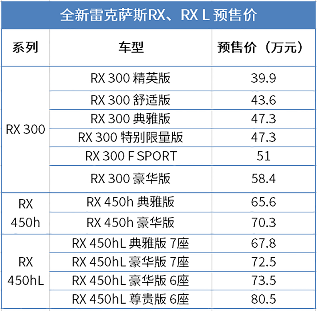 5、5/6/7座版本可选,雷克萨斯RX家族开启预售