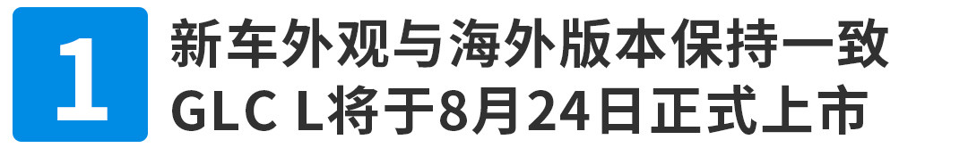 1、新车外观与海外版本保持一致,GLC L将于8月24日正式上市
