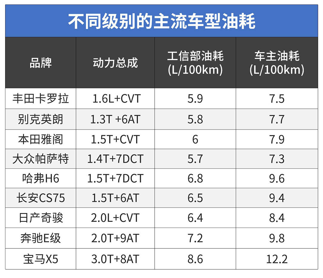 从表格中的数据来看,车主油耗和工信部油耗还是存在一定的差距,整体大概高出2-4L,这都是属于一个正常的范围,毕竟工信部的油耗都是在一个比较理想的条件下测试出来的。而结合上面提到的影响油耗的几个因素,开到比工信部油耗低的车主也会有很多。