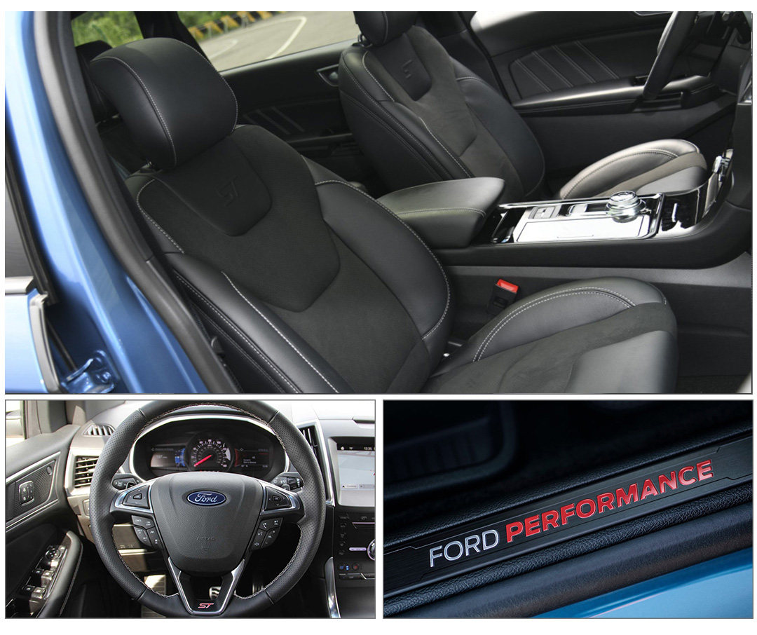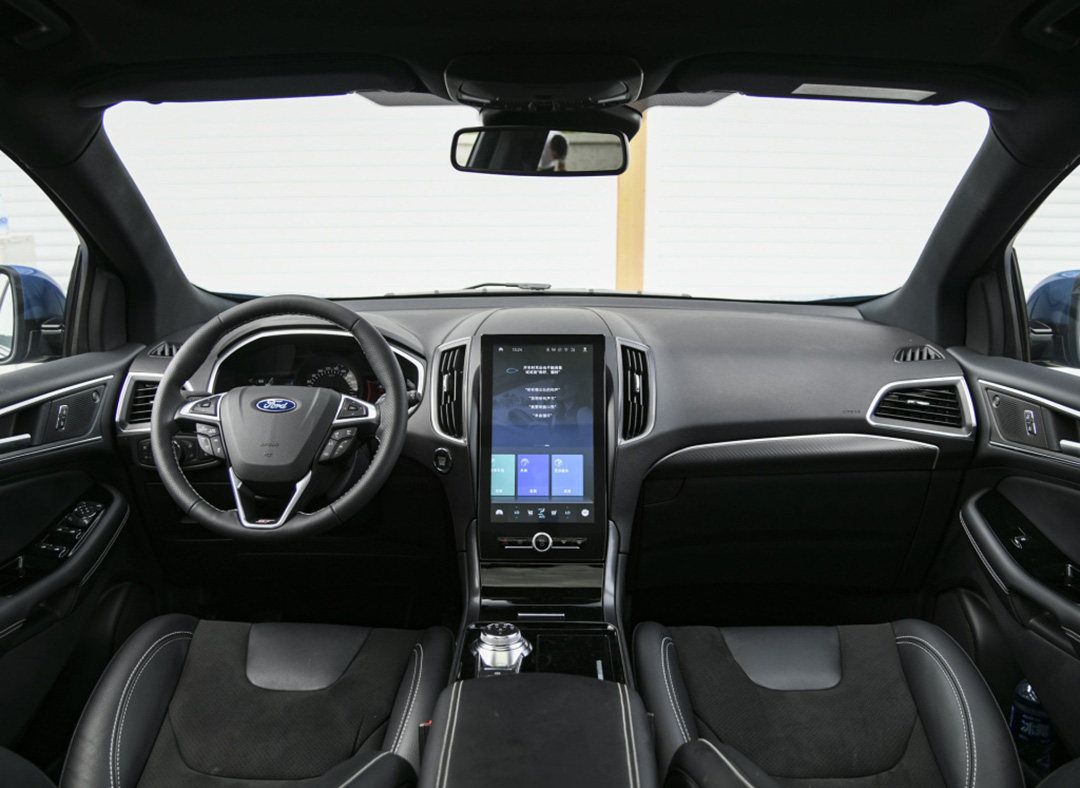 来到车内,ST与ST-Line的差距马上凸显,ST车型专属的迎宾踏板,包覆性更出色的ST专属前排座椅以及带有ST标识及换挡拨片的专属方向盘,都在暗示着这是一款性能SUV。此外,国产版车型也同步了中控样式,针对国内消费者的喜好更换成12.8英寸纵置中控屏,整体样式与国产新锐界保持一致,与海外车型形成差异。