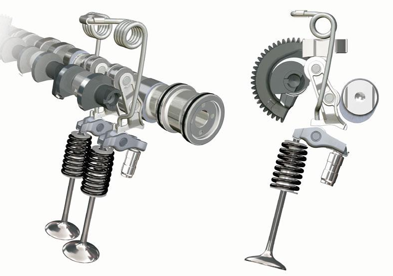 说到可变气门升程,大家可能知道大名鼎鼎的VTEC,其实本田VTEC只有高低两段气门升程调节,但是Valvetronic可以全范围调节(0.4-7mm)。