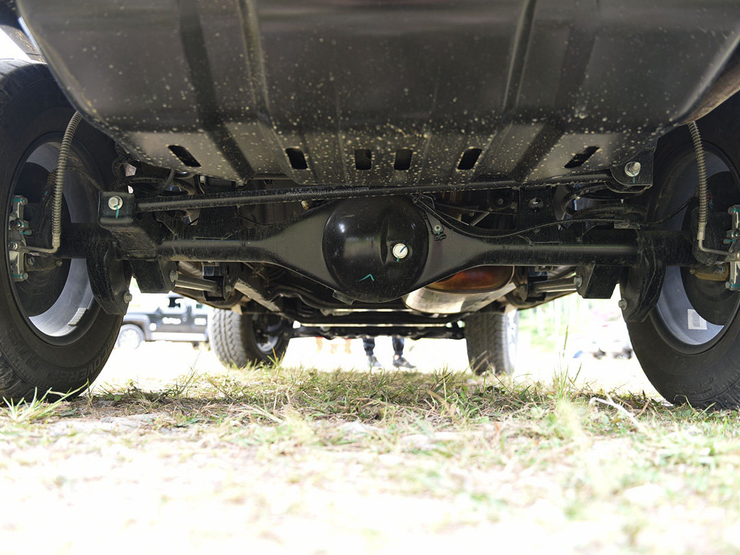 非承载式车身的它还拥有一套分时四驱系统,像交叉轴等路况对于牧游侠而言都能轻松应对。后桥的差速锁也能很好的限制车轮打滑,对打滑的车轮进行动力的锁止。