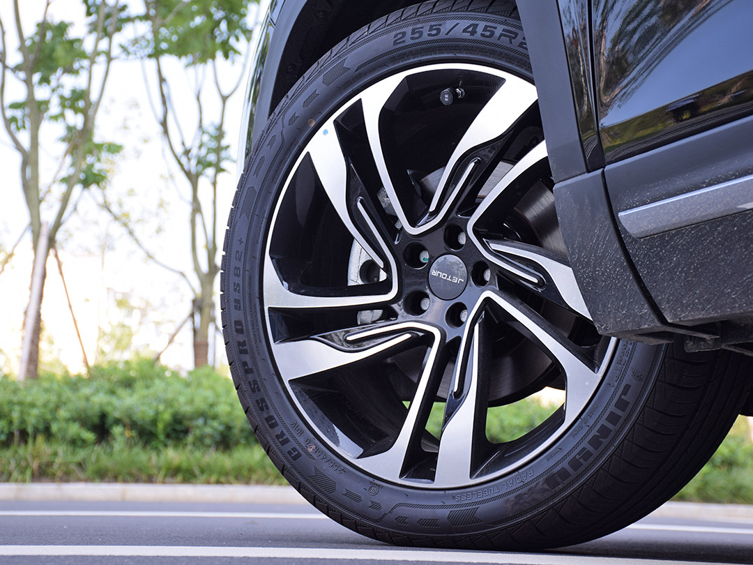 20英寸的双色大轮圈配上大尺寸的捷途X90恰到好处,采用了佳通的Giti Control P80公路SUV系列轮胎,尺寸为255/45 R20。该系列轮胎在动力、操控和安全方面有着不错的综合实力。