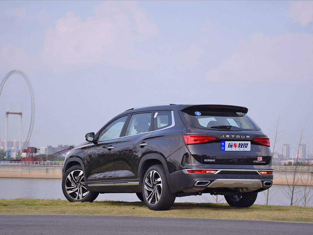 车尾的造型相对简洁,虽然没有使用时下流行的贯穿式尾灯设计,但醒目的“JETOUR”logo和别致的尾灯造型,很好的将车尾视觉中心上移。试驾车上,尾灯同样采用了LED光源。