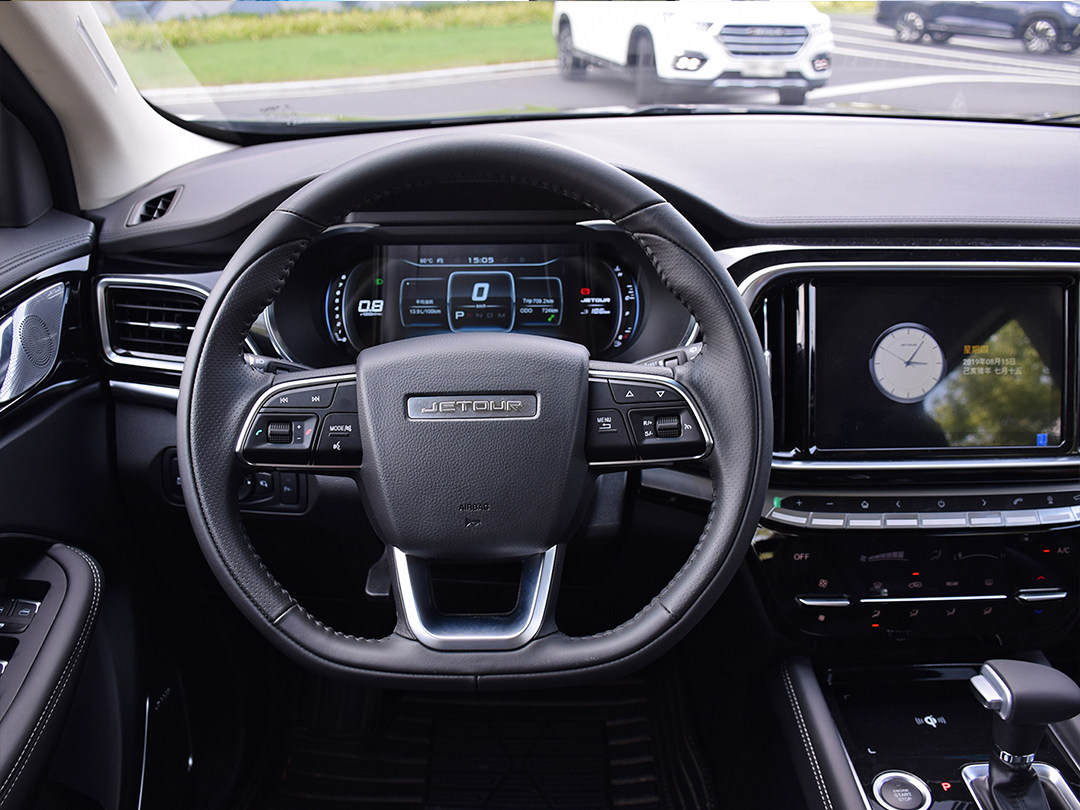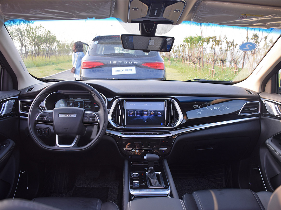 捷途X90的内饰以黑色调为主,辅以适当的银色饰条装点,整体看上去大气而不失精致。中控台上方使用了软性材质包裹,并且加以缝线修饰,整体质感不错。