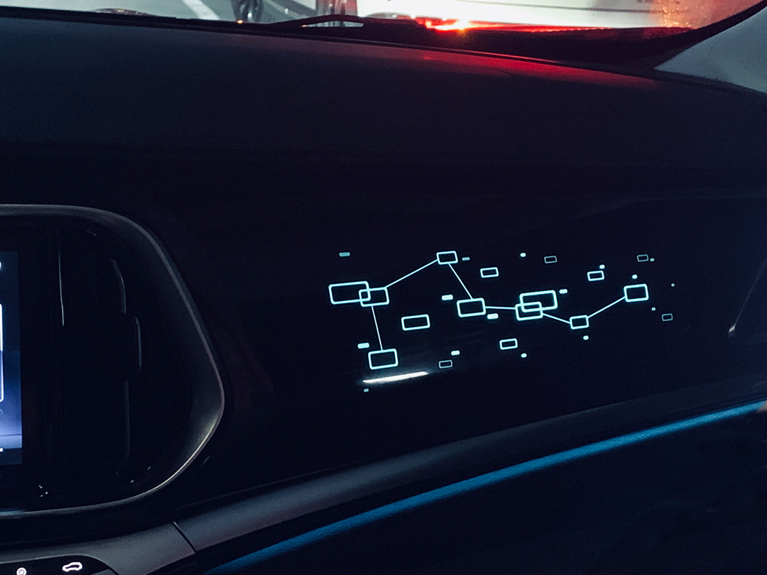 在靠近副驾驶侧的中控面板上采用了类似北斗七星造型的氛围灯设计,并且支持五种亮度调节,在晚上点亮后,有那么几分“物语星空”的意思。
