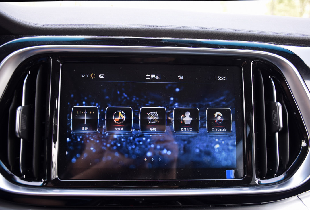 9英寸的中控屏幕同样显示效果清晰,并且支持多点触控,操作灵敏。内部集成的多媒体系统在UI设计上较为简洁,上手比较容易,系统支持在线音乐、语音控制、导航和百度CarLife手机互联等功能。