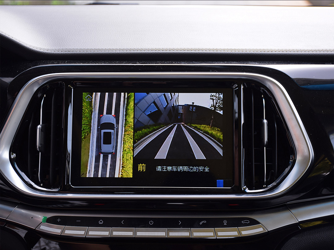 试驾车型配备了360°全景影像功能,对于大尺寸的SUV来说,全景影像功能很实用,在驻车和过一些狭窄路段时,会让驾驶者更加得心应手。或许是出于成本的考虑,摄像头的分辨率并不高,但有总比没有强。