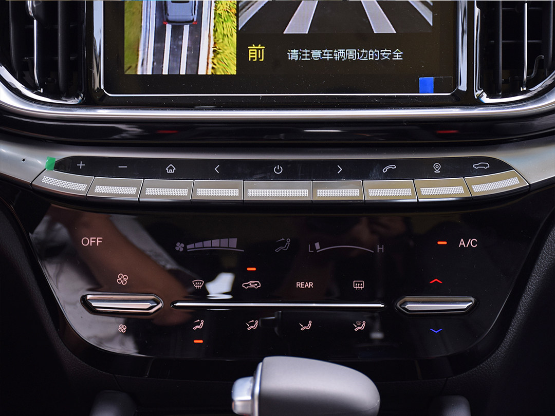 在中控屏下方保留了多媒体实体按键,加减音量、歌曲切换、导航、电话等常用功能按键均得以保留,少去了在屏幕里滑来滑去的操作,方便了行驶过程中的盲操作。空调控制区域同样保留了实体按键,风量调节和温度控制采用了拨杆的设计,操作起来非常的方便。
