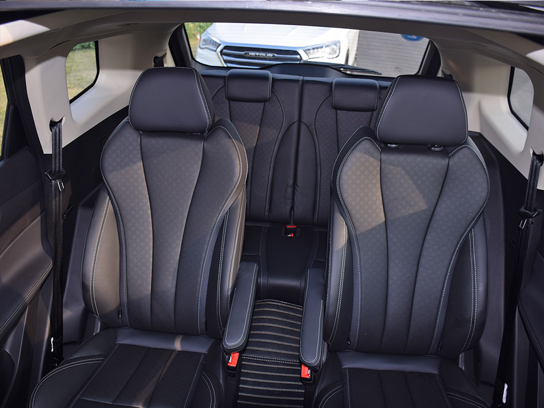 试驾车第二排采用了独立的座椅设计,在座椅中间留出了较宽的空间,方便第三排乘客的上下车;第二排座椅支持手动的前后和靠背角度调节,同时第二排座椅的扶手带有一定的限位功能,乘客可以根据自己的喜好将座椅调整到最舒适的状态。