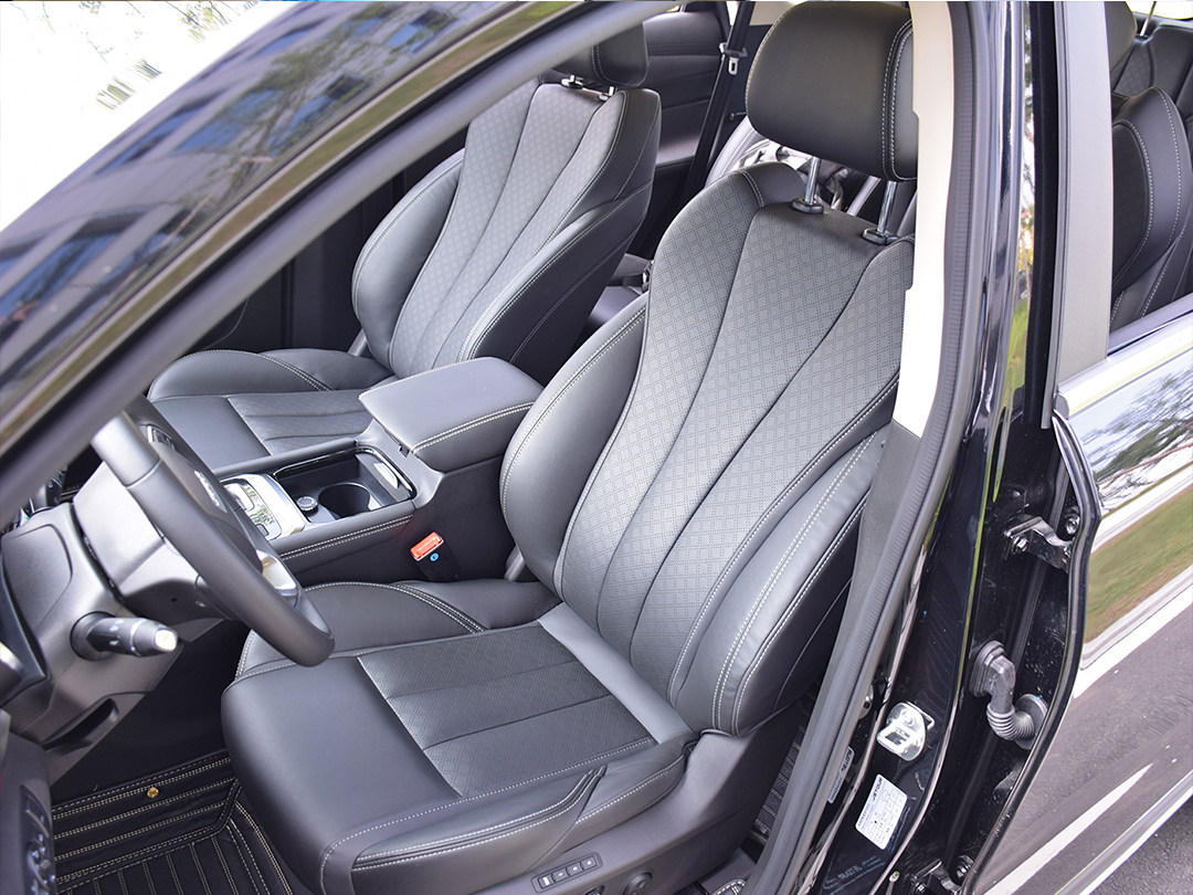 座椅采用了皮质包裹,并且采用了打孔设计,夏天坐上去的感觉比较友好。主副驾驶室座椅均支持电动调节,其中主驾座椅还配备了座椅记忆功能,所以在配置上厂家还是比较诚意。