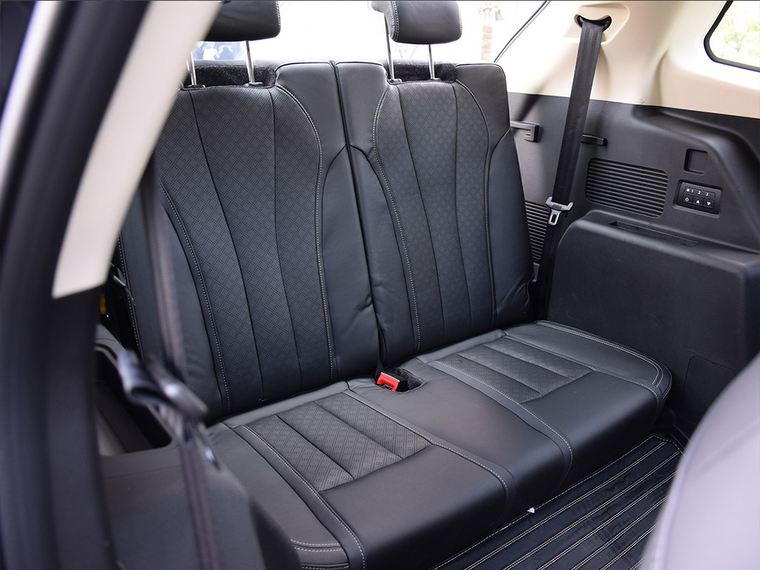 第三排的座椅相比前两排就单薄了许多,坐姿也比较低矮,适合临时的应急或小孩乘坐。不过值得一提的是,第三排虽然主要适合应急用,但舒适性的配置并不少,不仅在头顶了配备了空调出风口,而且还支持风量大小的调节。