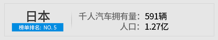 如果你查一下前几年日本的数据,会发现前几年日本就也是千人拥车591辆了,可能几年来都比较稳定所以世界银行依然保留这个数据,但这并不妨碍日本拥有亚洲最高的千人汽车拥有量,日本以他们的人口密度(347.8人/km²;中国144.3人/km²)来说是一个很高的数字了,千人拥车600辆也基本是人手一辆车,有些个点确实值得我们深思。