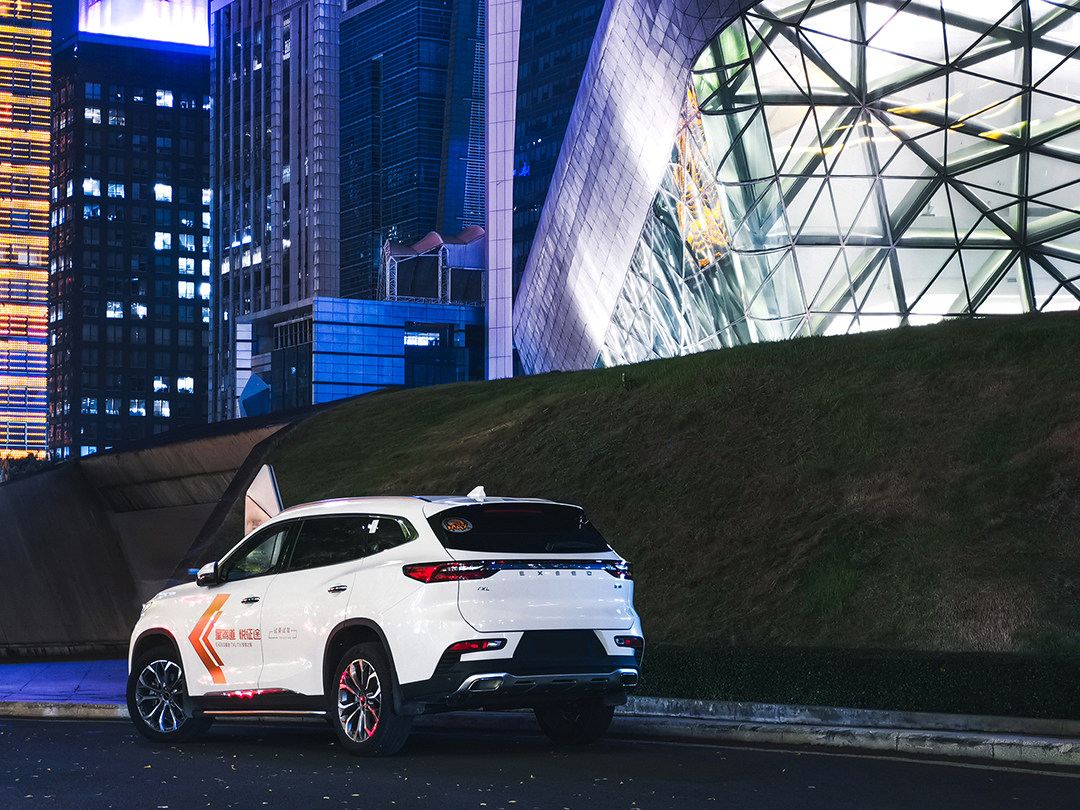 在拍摄时,如果空间允许,大家可以站远一些,使用较长的镜头焦距拍摄,这样可以有效减少车身因透视畸变产生的变形,这种拍摄风格十分适合像星途TXL这样体型健硕的SUV车型。