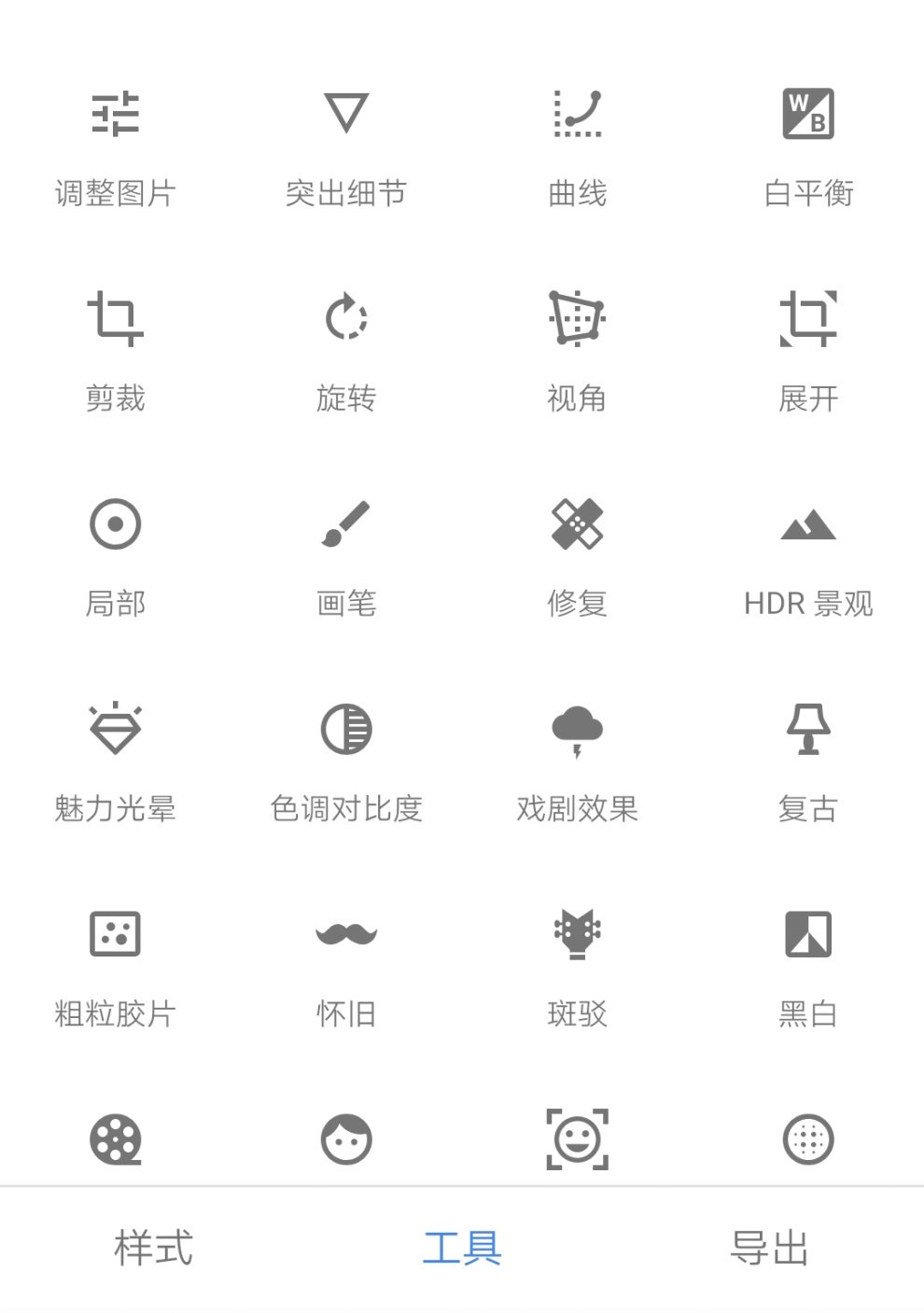 目前应用市场上针对图片后期处理的APP种类繁多,选择其中一些热门APP即可满足大部分后期处理需求。以这款广受摄影爱好者乃至专业摄影师喜爱的免费后期APP Snapseed为例,大家可以通过这个APP简单快捷地调节图片的曲线、白平衡、色彩等参数,更可直接套用其自带的“滤镜”效果,获得非常出色的画面效果。