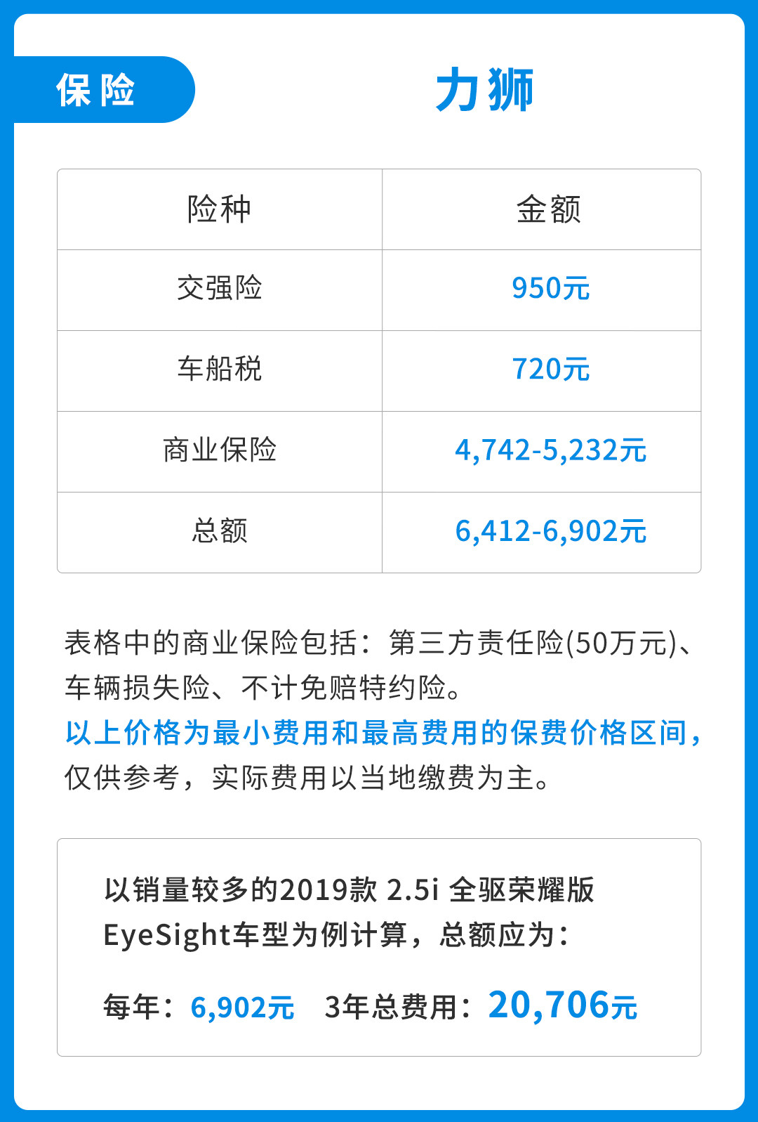 如果在车流中看见一部力狮经过,那么你肯定会看过几眼,或许它转瞬之间就飞驰而过,但能留给你的印象,是难忘的。说实话,力狮虽然作为一款全进口车型,但在保养的费用并不算高,在中型车里属于中等水平。不过官方给出的5,000公里/次的保养间隔对于全合成机油来说确实有点浪费,如果后期选择不在4S店保养的话,不妨把间隔拉长至7,500公里/次。还有,由于采用水平对置发动机,换火花塞并不像普通直列四缸发动机那样,而是需要从车底换,这也是导致工时费变高的主要原因。