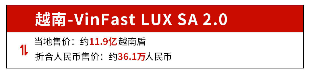 据VinGroup集团透露,VinFast LUX SA 2.0未来还有可能会引入国内市场。Excuse me?35万RMB的售价,一个99%的国人认知为0的全新国外汽车品牌。我为何不选择历史底蕴更深厚、体面加成更大的BBA?是嫌X1用前驱了,还是嫌Q3换代了?也许VinFast LUX SA 2.0不至于会被吊打,但销量榜下游位置是提前预订了。