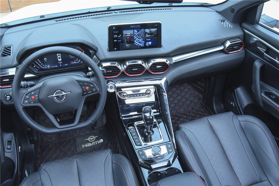 人最怕表里不一,车亦然。仿生学式设计赋予了外观十足的动感,如果内饰是家用的平淡范,里外不一的落差感被外观勾起的“欲望”一下子就会变淡,所幸海马8S做到了表里如一。内饰随处可见的红色元素、向驾驶员一侧靠拢的中控台造型、超跑专属的碳纤维饰板(这个价位就不要奢想是真的了)、悬浮式中控屏、D字型的方向盘。运动气息扑面而来。