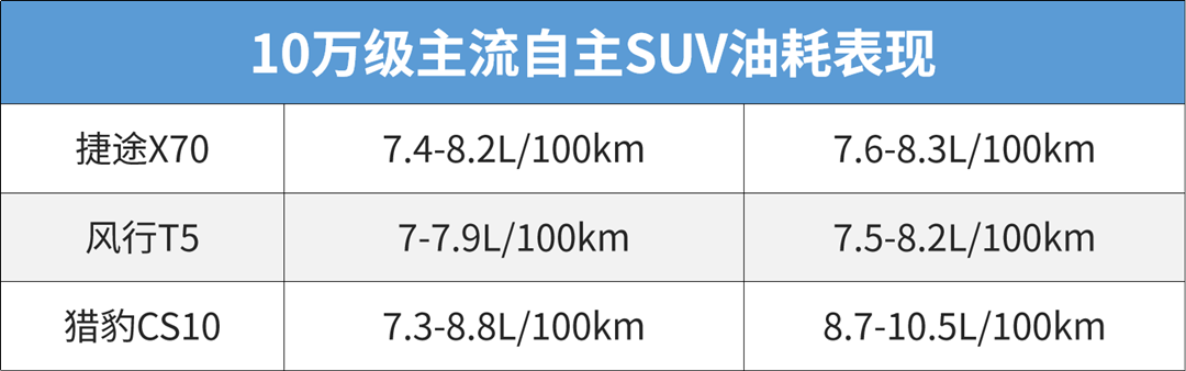 举一个例子,捷途X70的工信部油耗为7.4-8.2升/100公里,根据用户的口碑来看捷途X70的油耗为7.6-8.3升/100公里。这已经是比较接近的例子(也有可能是新车用户基数不太高)。