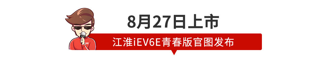 日前,江淮汽车发布了江淮iEV6E青春版车型的官图,新车将于8月27日正式上市。iEV6E青春版基于现款iEV6而来,外观新增了双色车身、双色包围以及行李架。内饰方面青春版车型维持了iEV6豪华智能型精装版的设定,7英寸中控屏、旋钮式换挡机构均配备在iEV6E青春版之上。目前官方尚未公布该车具体动力信息,作为参考,2019款iEV6E搭载一台最大功率55千瓦、峰值扭矩165牛·米的驱动电机,配合容量34.9kWh的磷酸铁锂电池,其NEDC综合续航可达310km。而有相关消息称,iEV6E青春版将换装江淮全新研发的“六合一”电驱动系统,具体信息有待官方进一步确认。