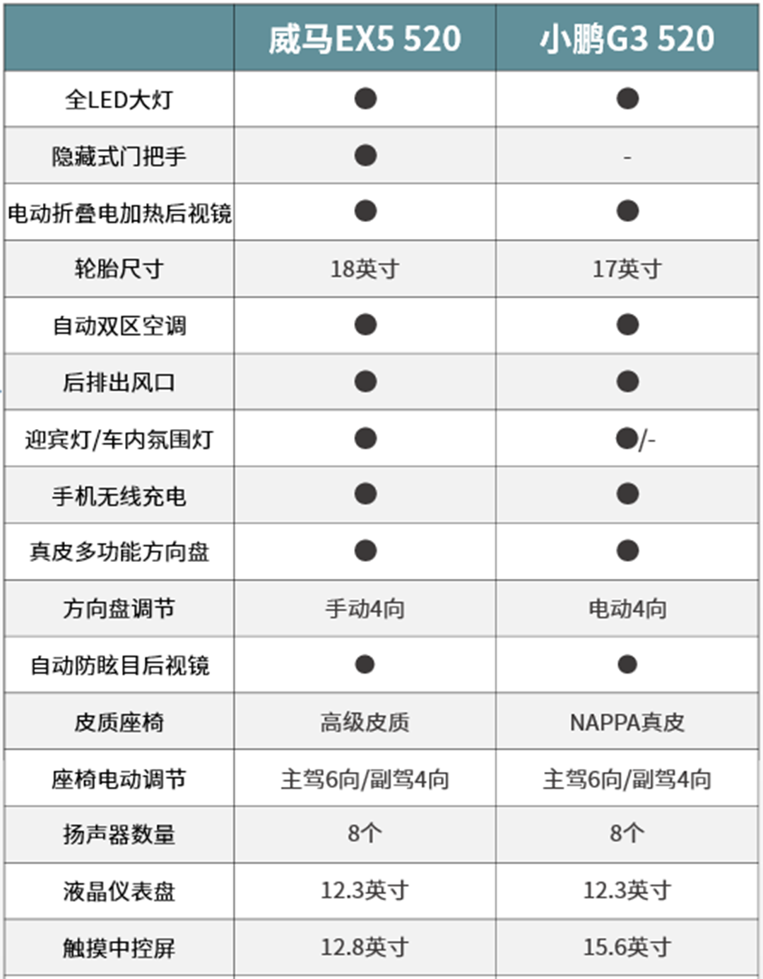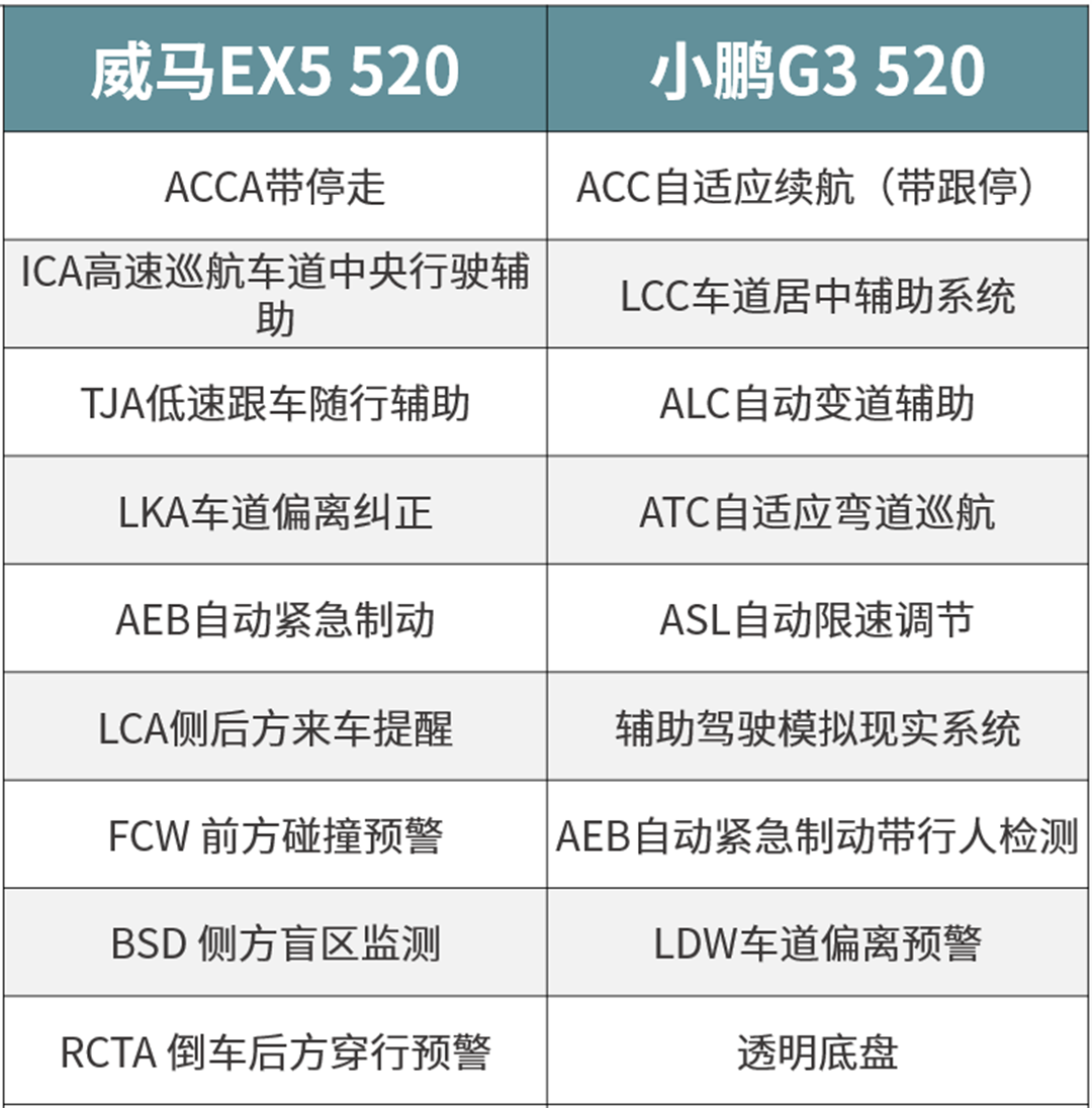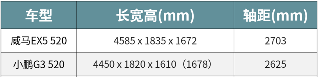 同为520km的长续航版本,并且同为直接竞争对手的纯电紧凑型SUV,论身材,威马EX5 520要比小鹏G3 520大了一小圈,不过在售价上,小鹏G3 520相对门槛更低。
