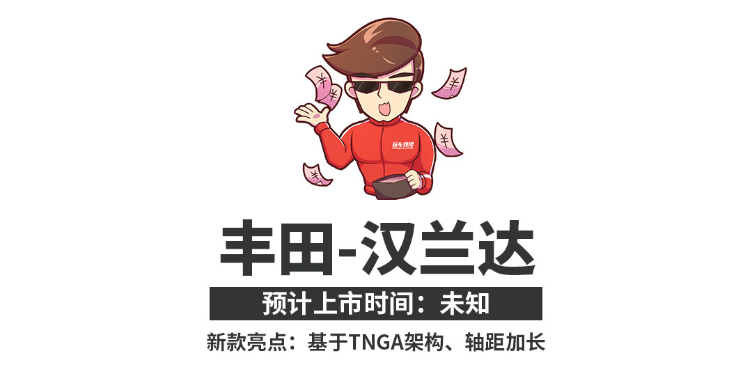 汉兰达终于要换代啦!不过现在兴奋已经有点迟,因为早在今年4月的纽约车展上,全新一代的汉兰达就已经发布。新车将现款为人诟病的2.0T发动机,改成2.5L油电混合动力和3.5L V6发动机两种。幸福的美国消费者可在今年12月拿到V6版本车型,而2.5L油电混合动力则是要等到2020年。至于中国,不妨试试在2021年春季去广汽丰田4S店询问可以订车了没,顺便看下要加价多少钱。