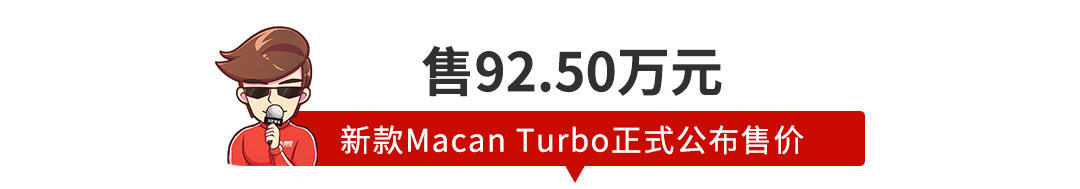 日前,保时捷正式发布了新款保时捷Macan Turbo车型的官图,同时公布了新车在国内的售价,新车售价为92.50万元。新车基本保持了目前在售新款Macan 的外观设计,针对部分细节进行微调;内饰同样维持了现款Macan的设计布局。作为Turbo车型,发动机无疑是Macan Turbo的重点,搭载2.9L双涡轮增压V6发动机,其最大功率440马力,峰值扭矩550牛·米,传动匹配7速PDK双离合变速箱;在选装Sport Chrono组件的情况下百公里加速时间仅为4.3秒,同时新车还提供保时捷陶瓷复合制动系统(PCCB)以及可调空气悬架等选装,进一步提升车辆的运动性能。
