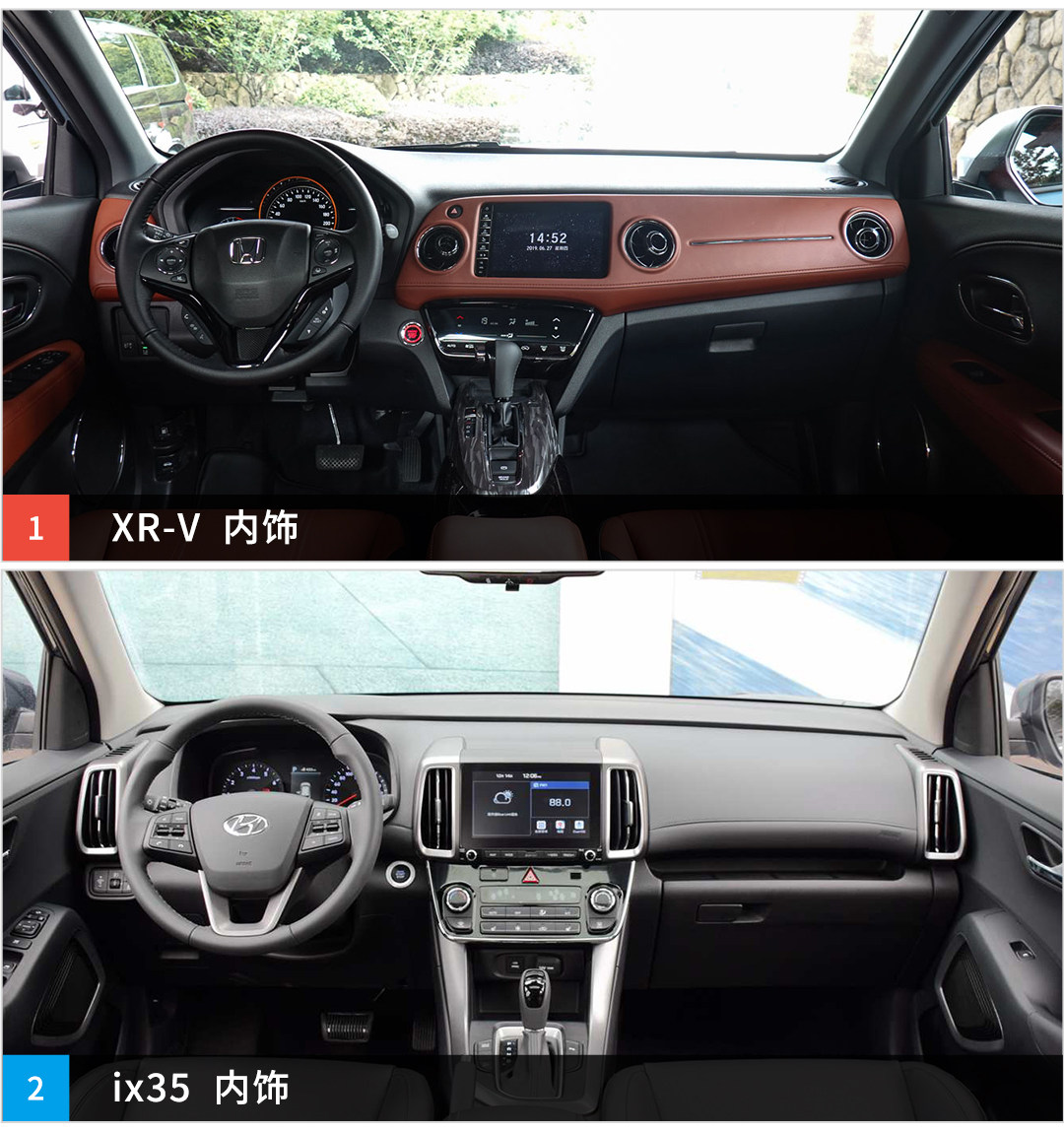 一看内饰,两者最大的区别马上体现出来,虽然教授不太喜欢XR-V的这个配色,但双拼色的设计容易让人眼前一亮,算是个迎合年轻人的小手段。除此之外,非对称的仪表台设计更倾向于驾驶员一边,活跃了“驾驶”的氛围;