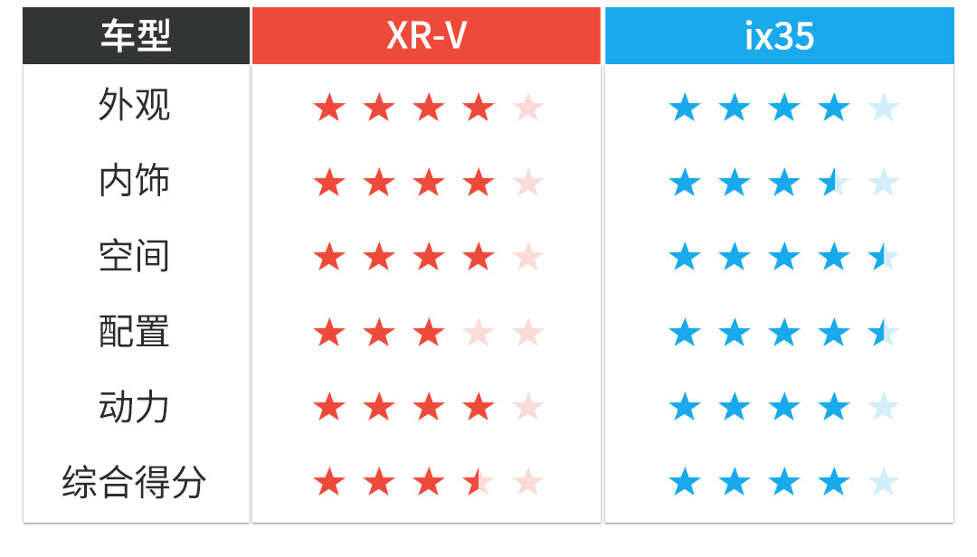 从结果来看,无论小型SUV尺寸怎么大,终究还是小型SUV,与紧凑型SUV之间有着物理决定的差距。不过这不妨碍教授推荐XR-V给大家,因为它能在有限的空间位置尽可能得做到优秀,对于需要好看好开多过“好大”的年轻消费者来说,XR-V更值得选择。至于ix35,它本身的素质并不差,只是比起推荐给年轻人,更适合推荐给“奶爸”或后排经常有乘坐需求的消费者。