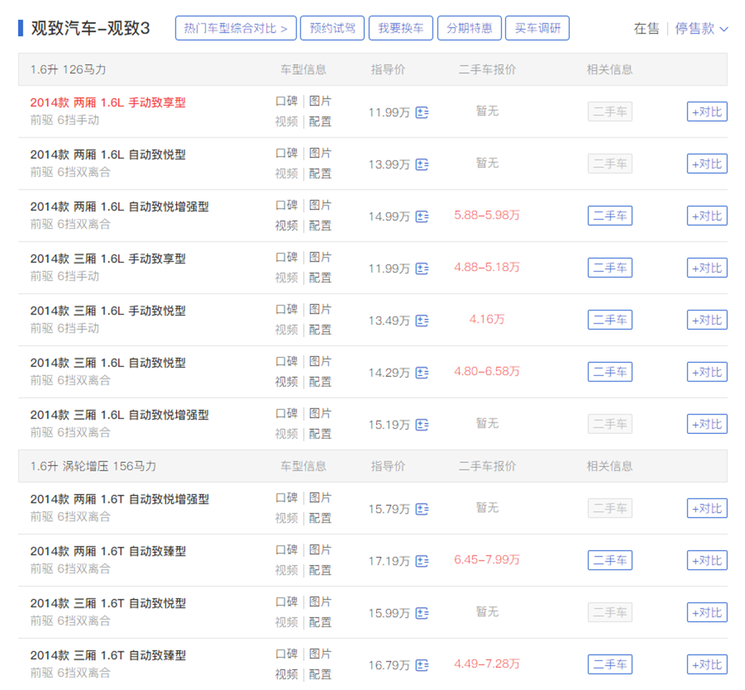 不仅如此,观致3明知道自己不是合资品牌的命,但却卖着合资品牌的价格,当年起步11.99万,顶配17.19万止,比某些合资品牌同级别车型卖得还贵。殊不知,当代中国人还是有着浓厚的“舶来品”思维,品牌附加值在国人选购汽车时的影响力是巨大的,很多一线自主车企即使经营多年,在国人心中的地位也依旧不如合资厂,也不敢卖这么贵的价钱,何况是观致这样一个后来者。一步登天是不可能的事,对于消费来说,价格就是一个新品牌体现诚意的最佳方式。