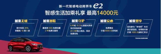 e2是对品牌“加乘”哲学的全新演绎,正如比亚迪汽车销售有限公司总经理赵长江所言:“瞄准年轻化,在充满可能性的年代,e2给年轻用户最好的理由,做最简单的选择。为了推动电动汽车普及,我们用极致产品力加极致定价造就未来趋势!我们相信e2会成为10万级最强纯电产品,我们也号召更多的年轻人和年轻家庭,一起迈入智能电动出行新生活!”